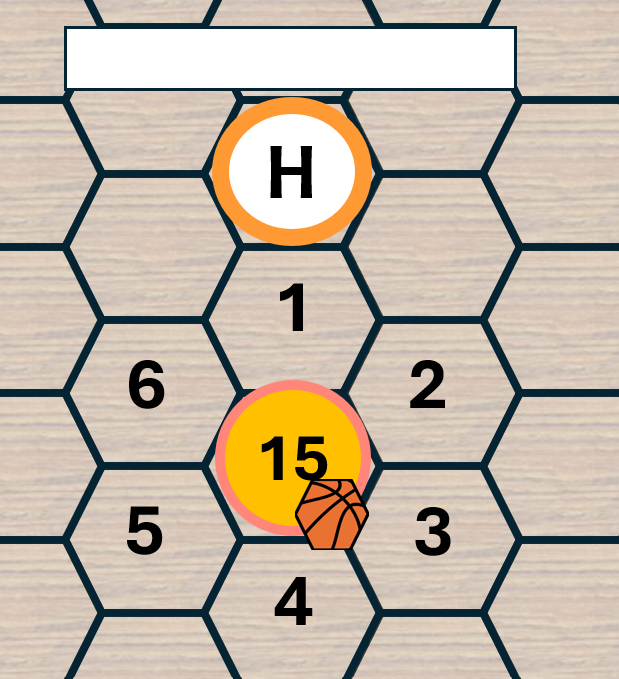 The direction the loose ball is going to travel relies on 3 factors: the hex the Ball Handler is located in, the location of the hoop, and the value of the dice roll.